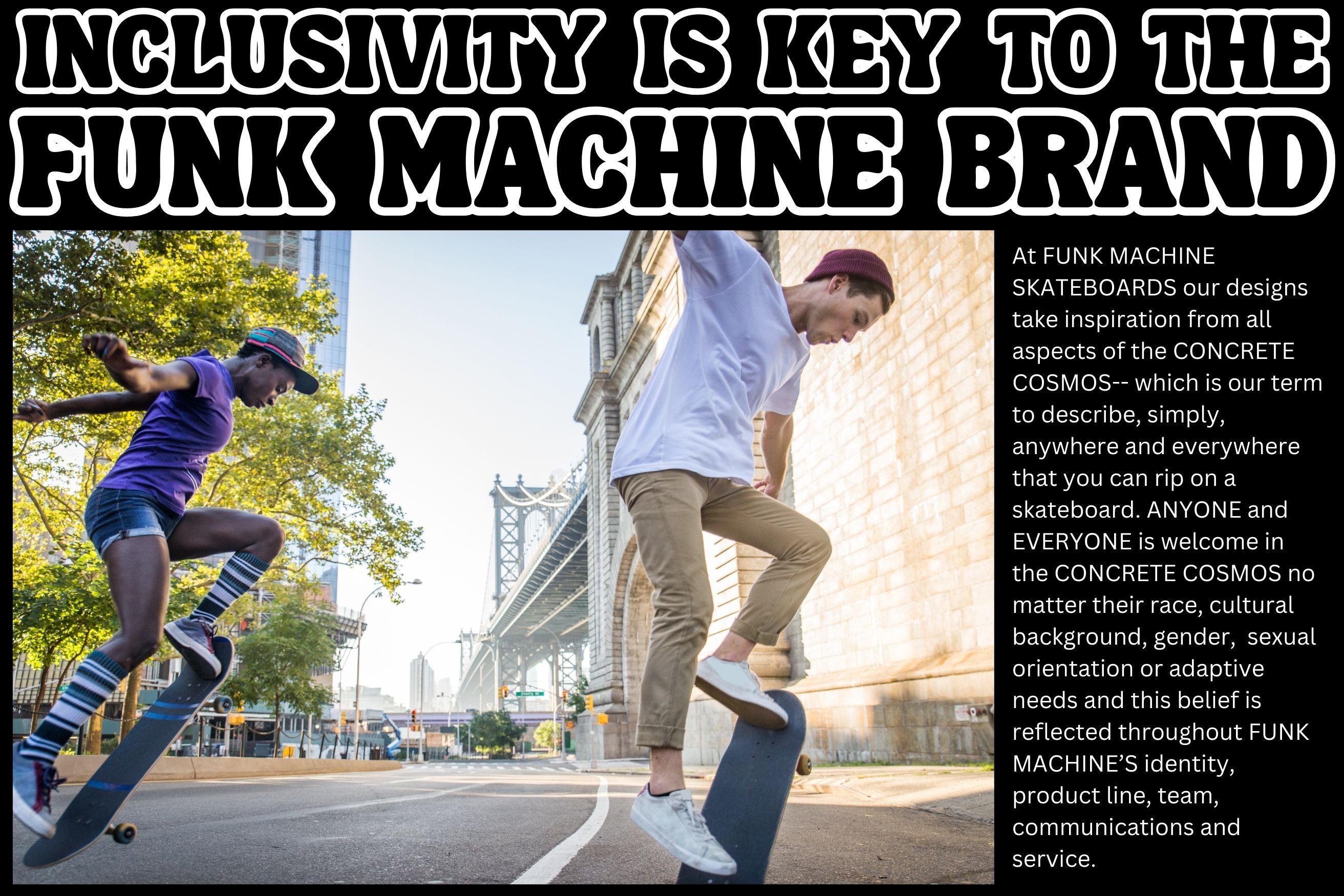 Choose FUNK MACHINE'S RIDE WITH PRIDE! line of streetwear, skateboards and accessories...